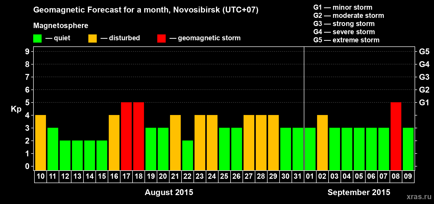 Geomagnetic storm forecast in Novosibirsk for Aug 10, 2015