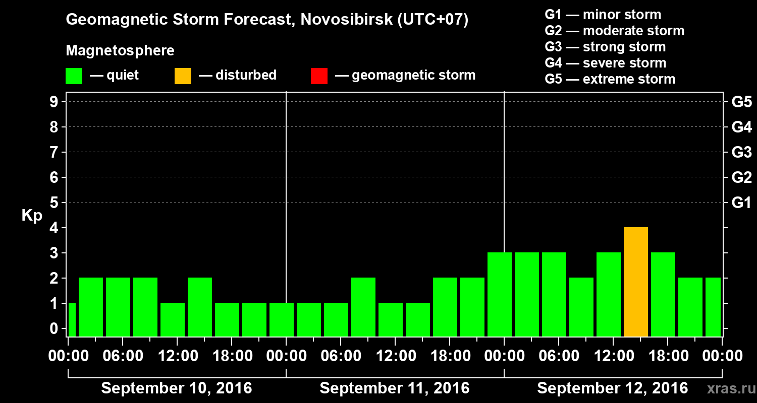 Geomagnetic storm forecast in Novosibirsk for Sep 10, 2016