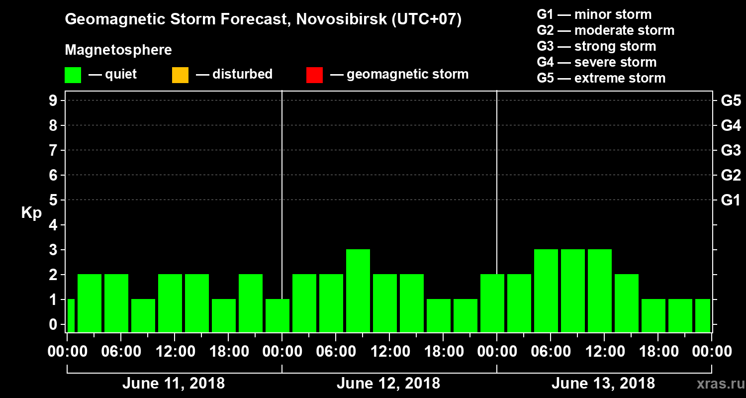 Geomagnetic storm forecast in Novosibirsk for Jun 11, 2018