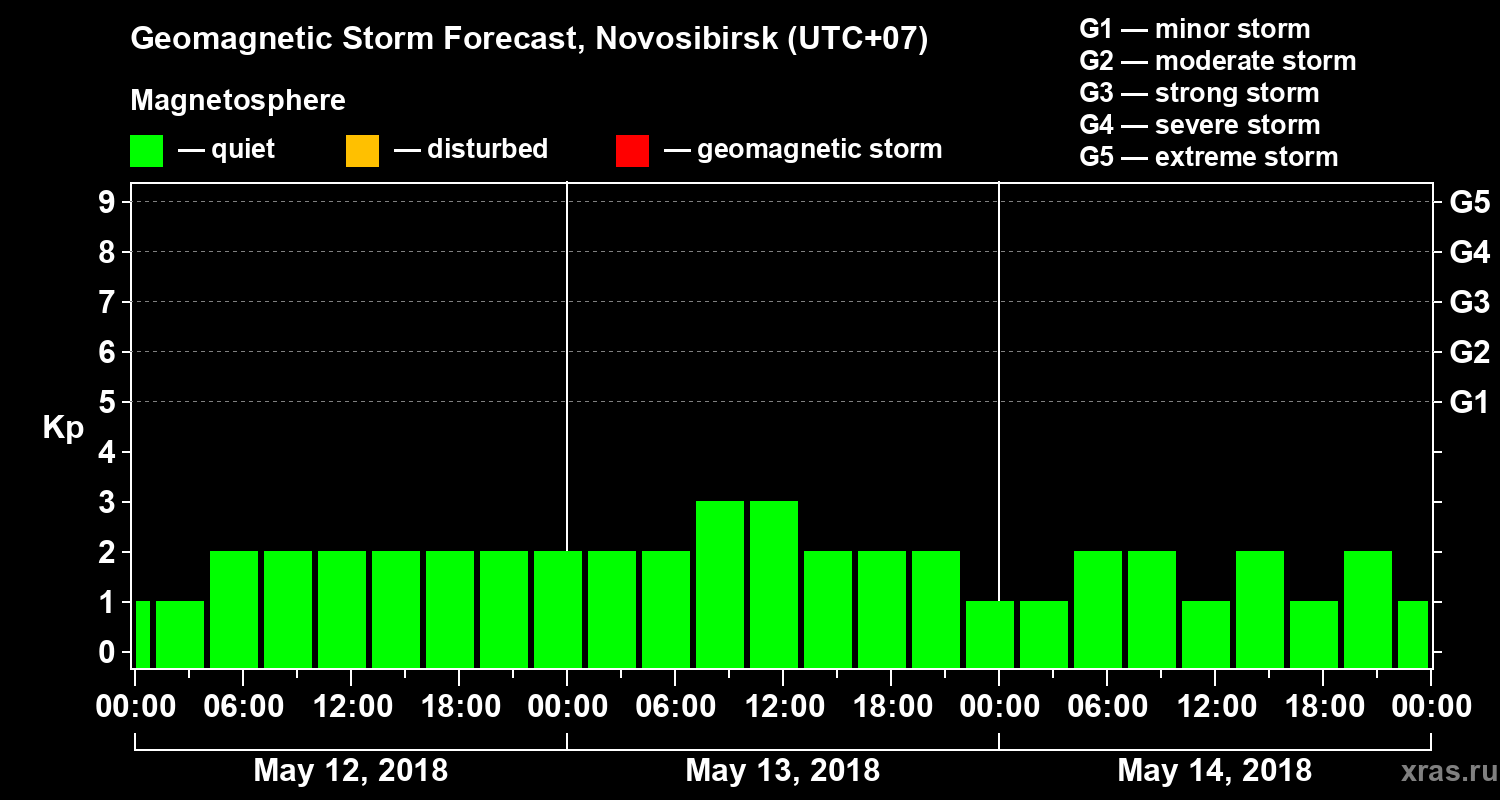 Geomagnetic activity forecast in Novosibirsk — May 12, 2018