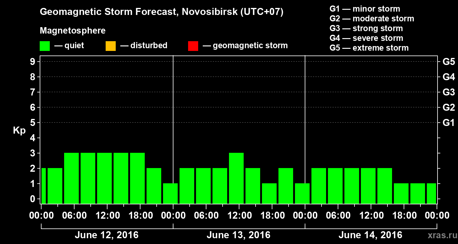 Geomagnetic storm forecast in Novosibirsk for Jun 12, 2016