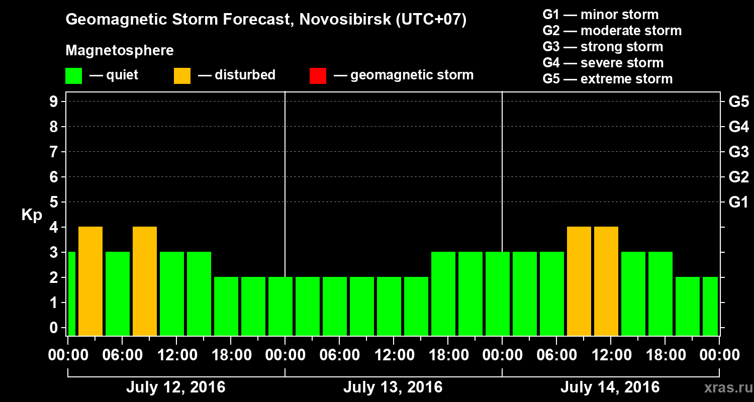 Geomagnetic storm forecast in Novosibirsk for Jul 12, 2016