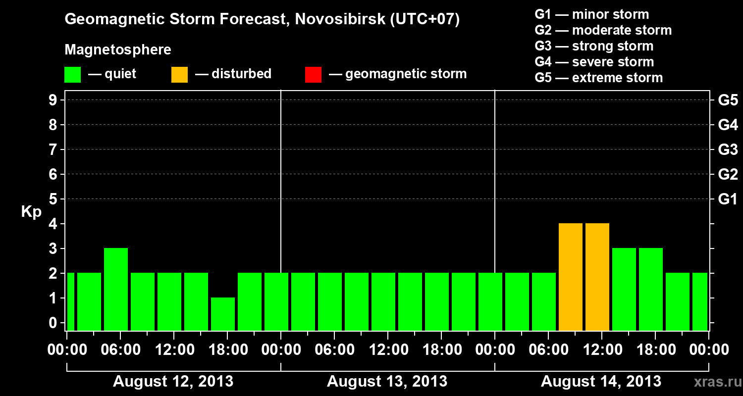 Geomagnetic activity forecast in Novosibirsk — Aug 12, 2013