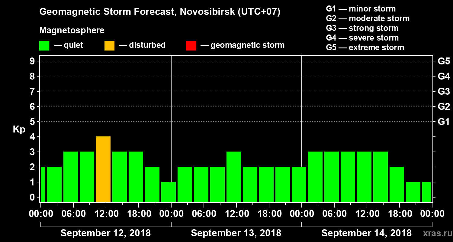Geomagnetic storm forecast in Novosibirsk for Sep 12, 2018