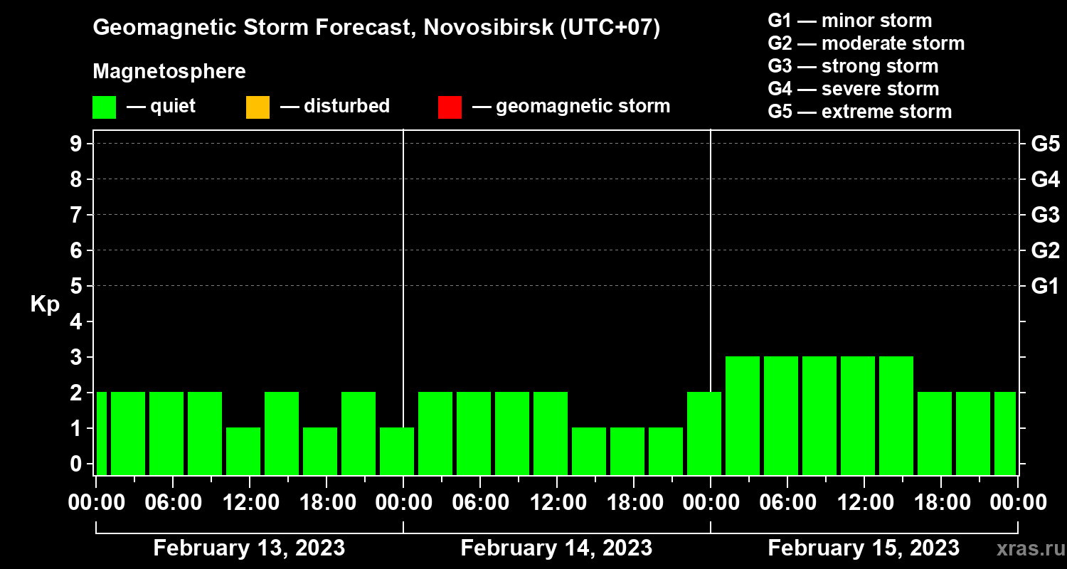 Geomagnetic activity forecast in Novosibirsk — Feb 13, 2023
