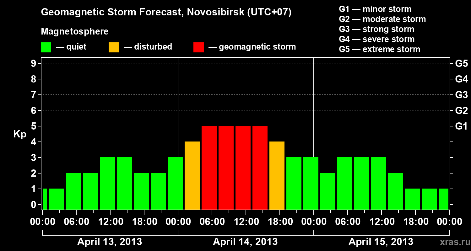 Geomagnetic storm forecast in Novosibirsk for Apr 13, 2013