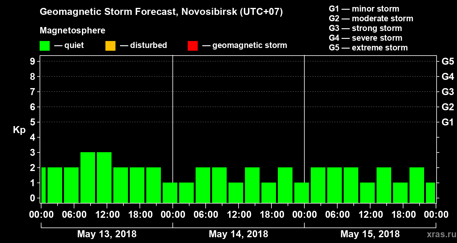 Geomagnetic activity forecast in Novosibirsk — May 13, 2018