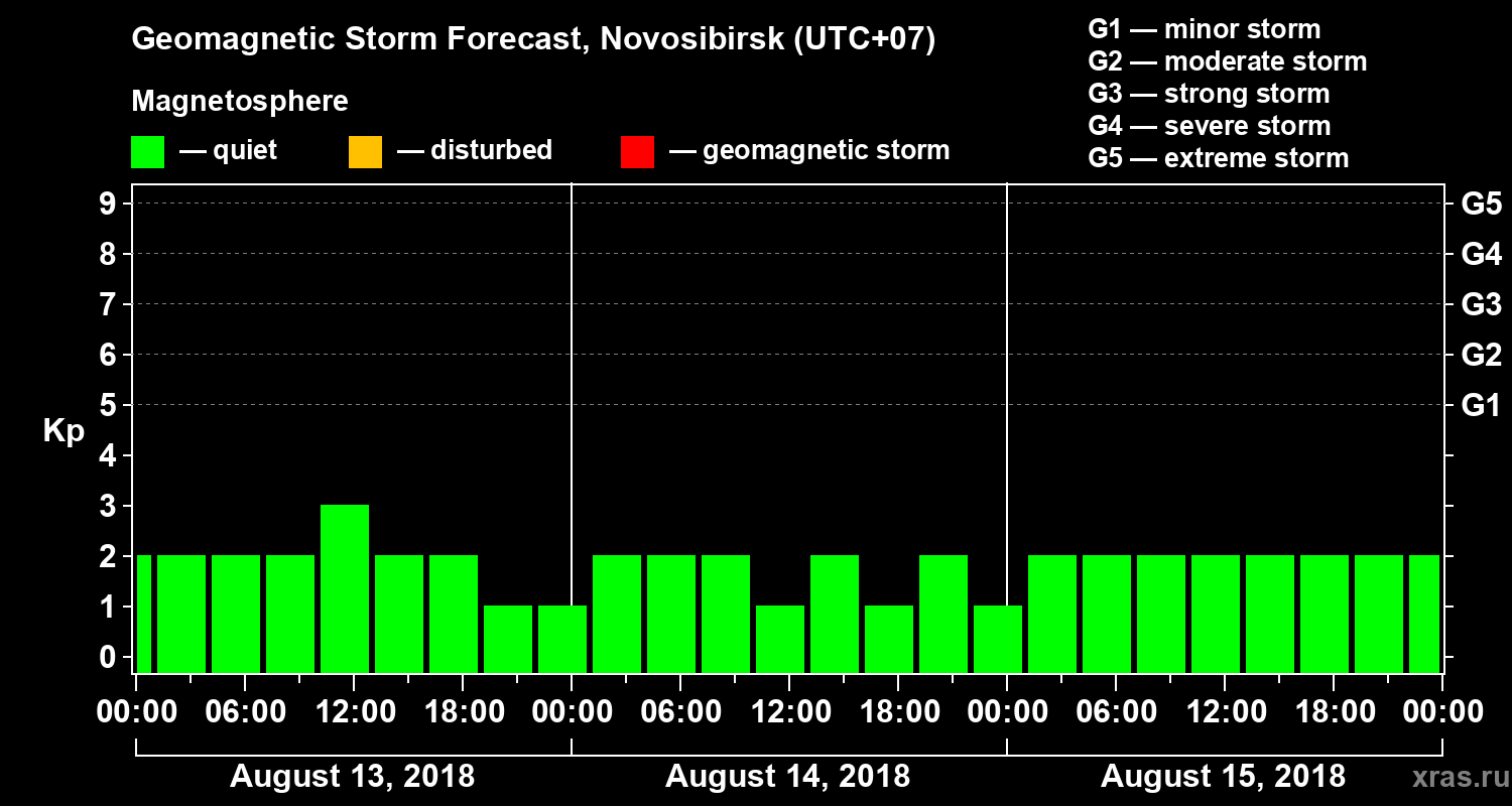 Geomagnetic storm forecast in Novosibirsk for Aug 13, 2018