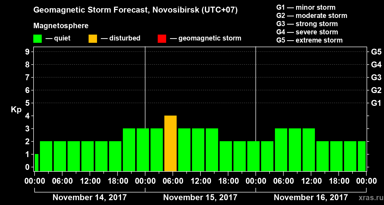 Geomagnetic activity forecast in Novosibirsk — Nov 14, 2017