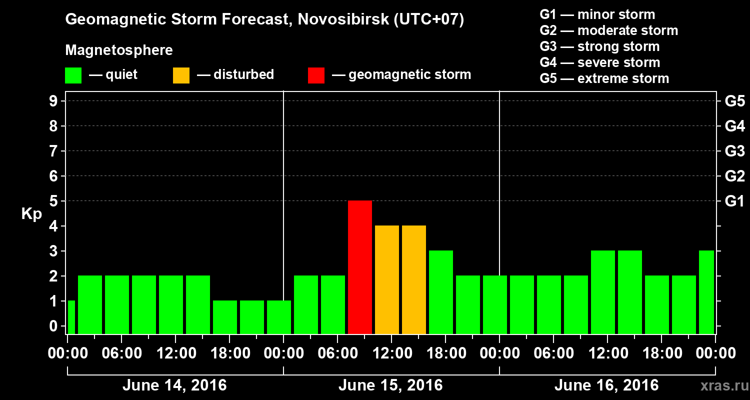 Geomagnetic storm forecast in Novosibirsk for Jun 14, 2016