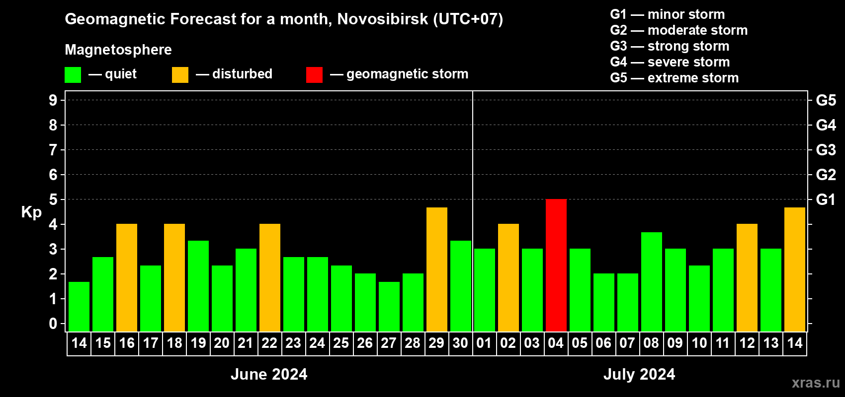 Geomagnetic storm forecast in Novosibirsk for Jun 14, 2024