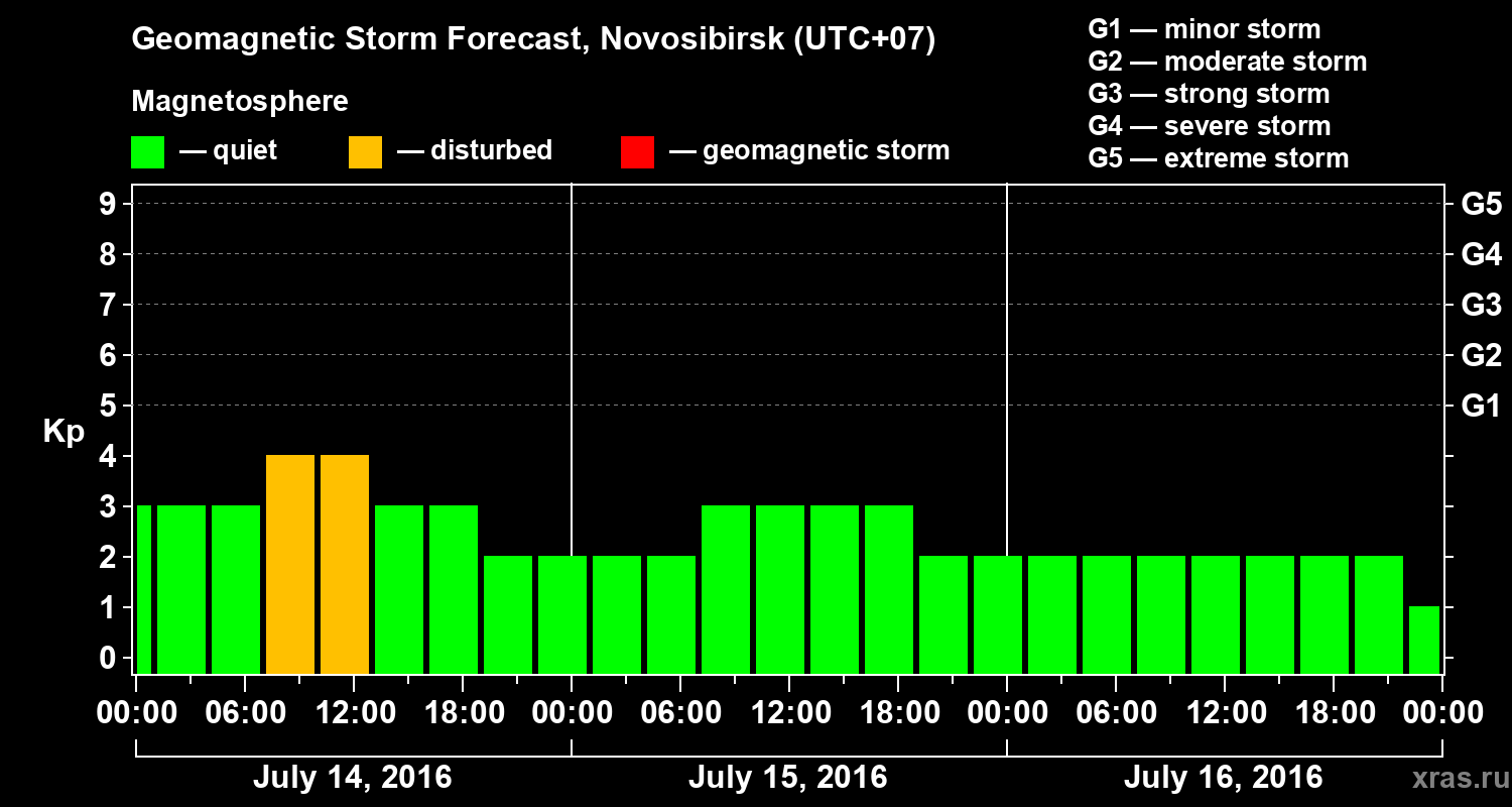 Geomagnetic storm forecast in Novosibirsk for Jul 14, 2016