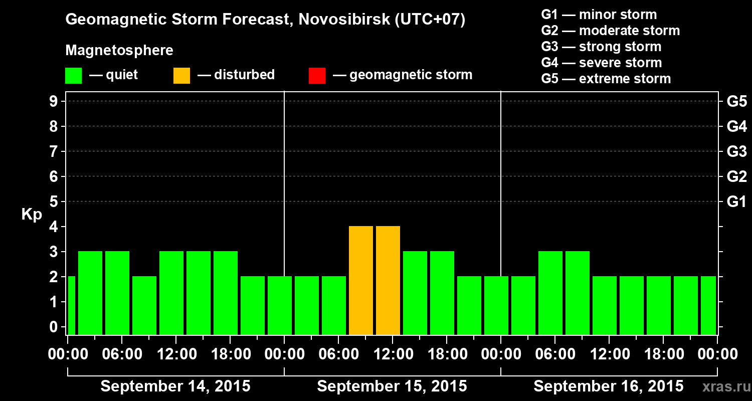 Geomagnetic storm forecast in Novosibirsk for Sep 14, 2015