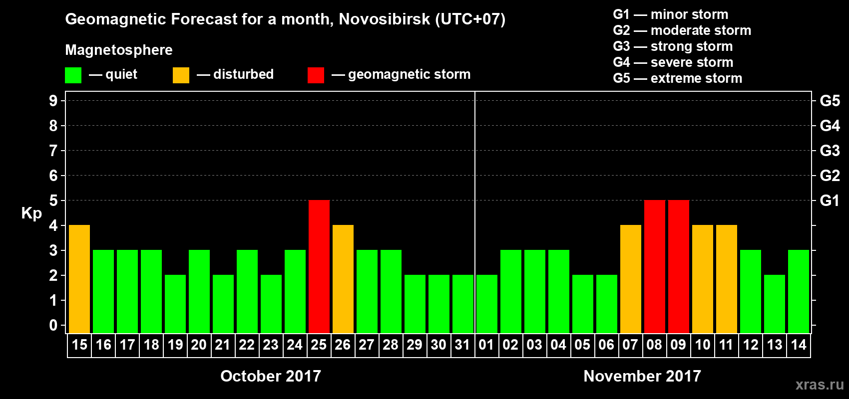 Geomagnetic activity forecast in Novosibirsk — Oct 15, 2017