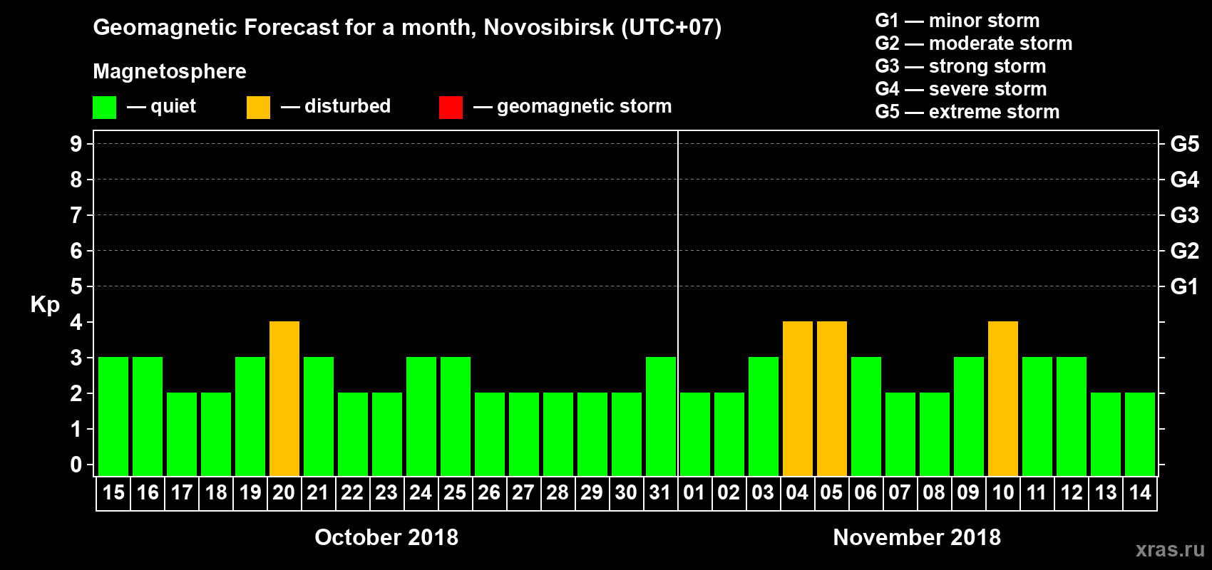 Geomagnetic activity forecast in Novosibirsk — Oct 15, 2018