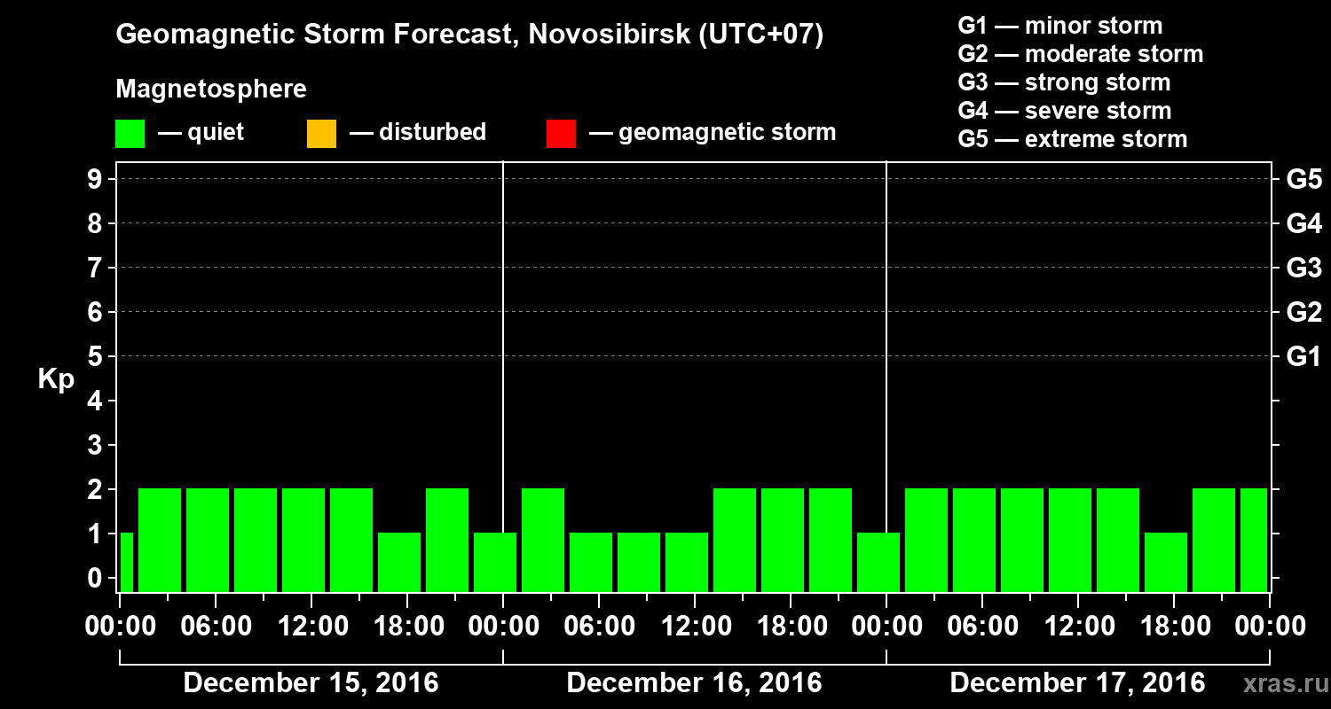 Geomagnetic storm forecast in Novosibirsk for Dec 15, 2016