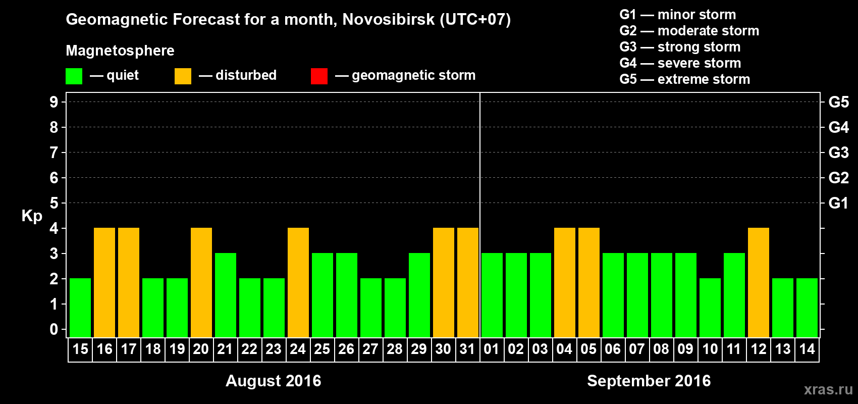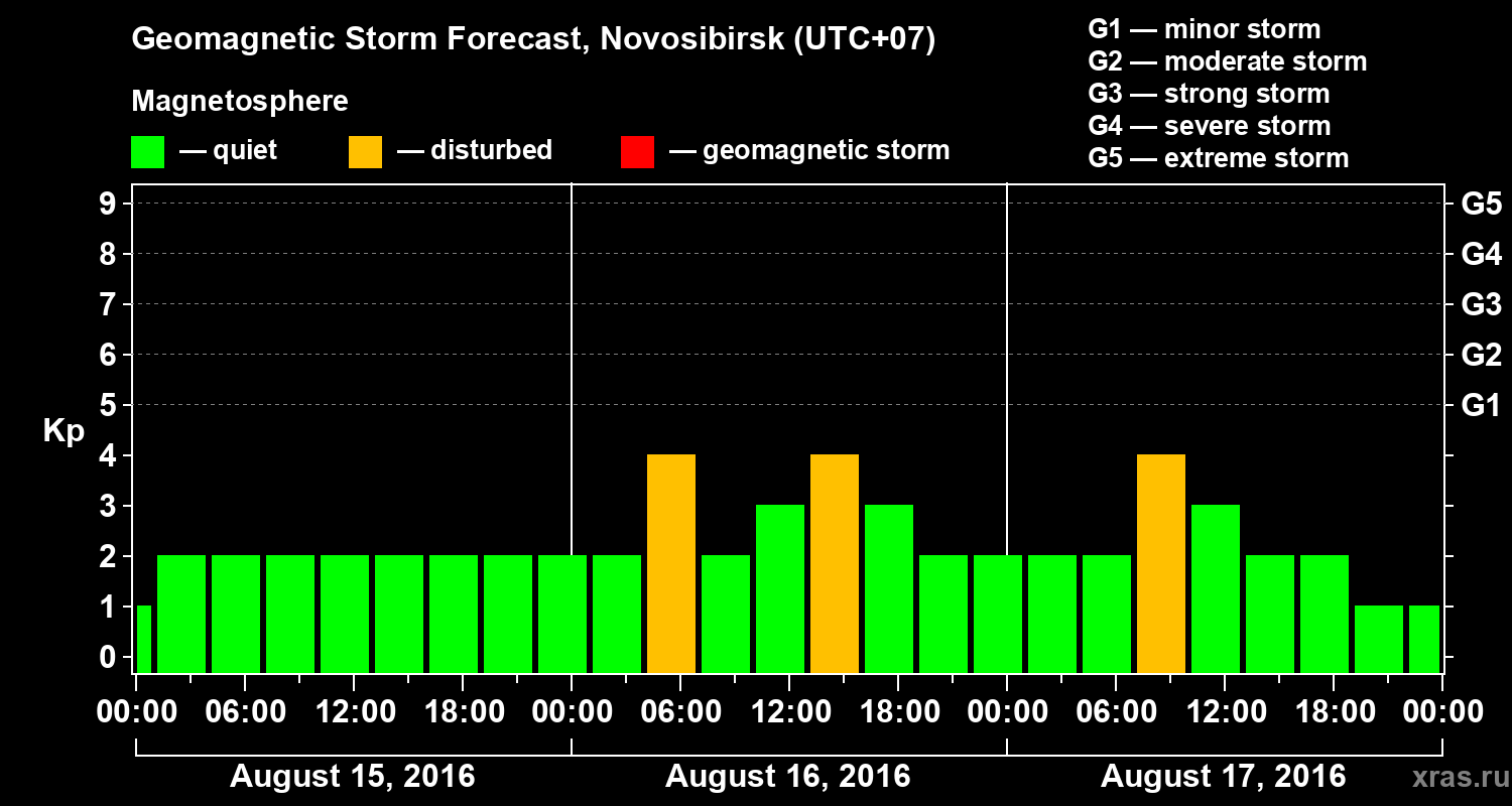 Geomagnetic storm forecast in Novosibirsk for Aug 15, 2016