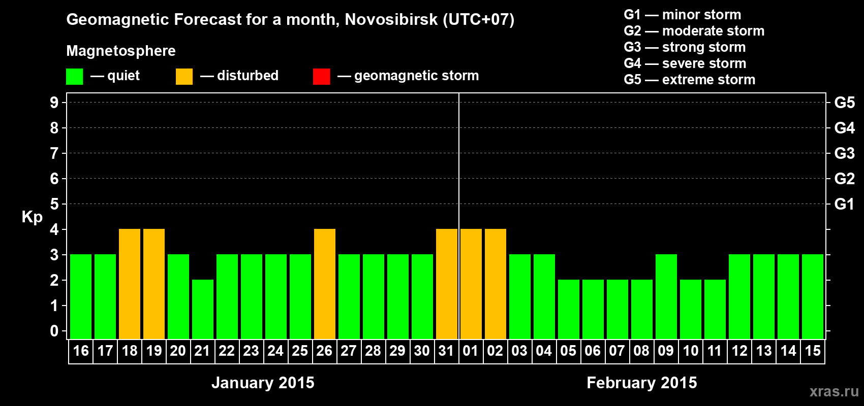 Geomagnetic storm forecast in Novosibirsk for Jan 16, 2015