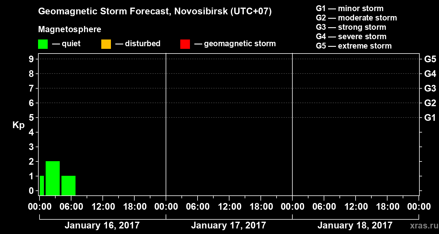 Geomagnetic storm forecast in Novosibirsk for Jan 16, 2017