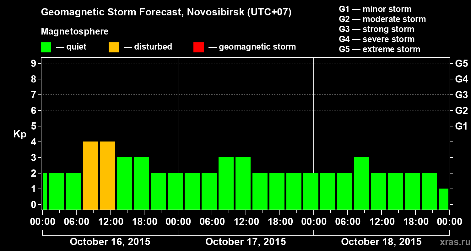 Geomagnetic storm forecast in Novosibirsk for Oct 16, 2015