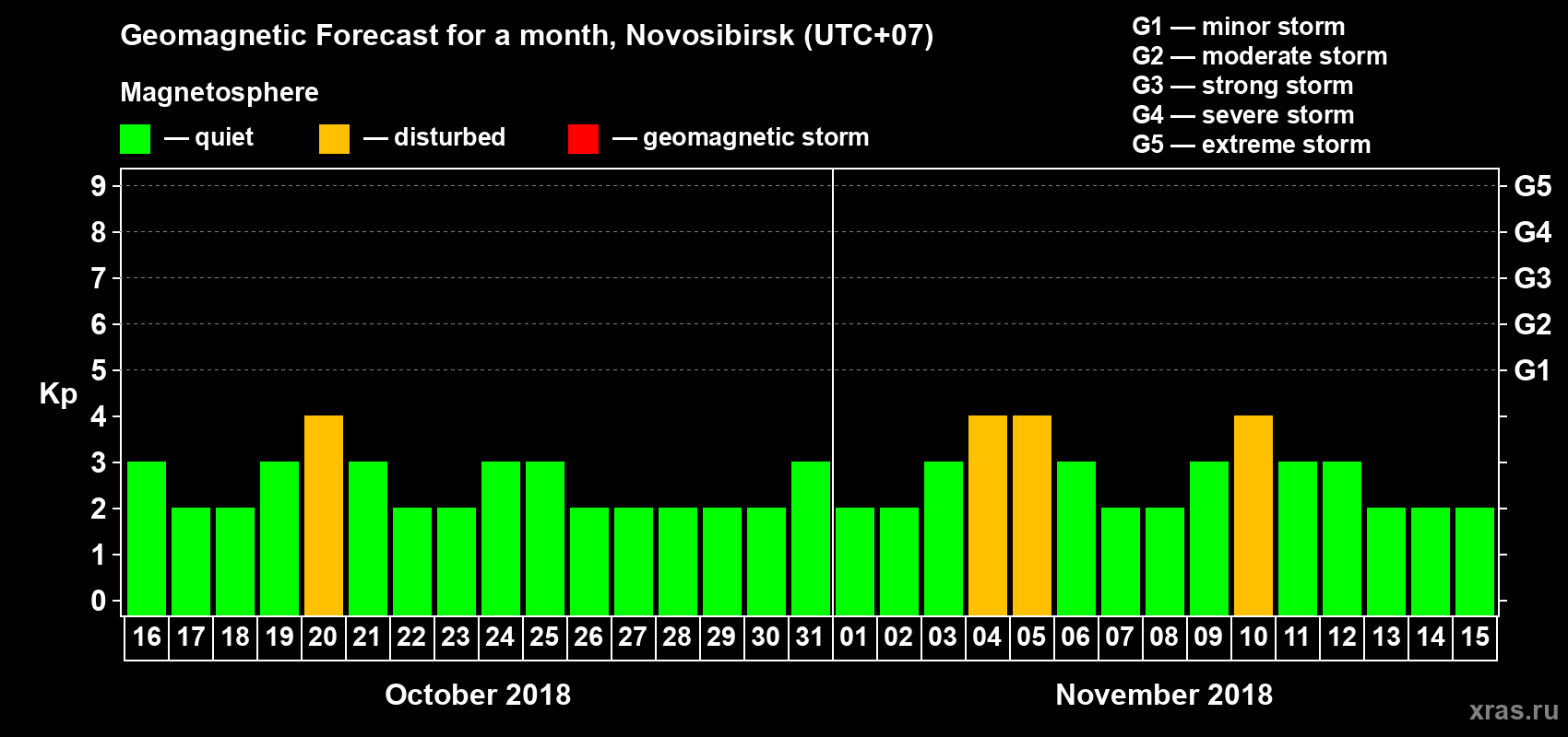 Geomagnetic storm forecast in Novosibirsk for Oct 16, 2018
