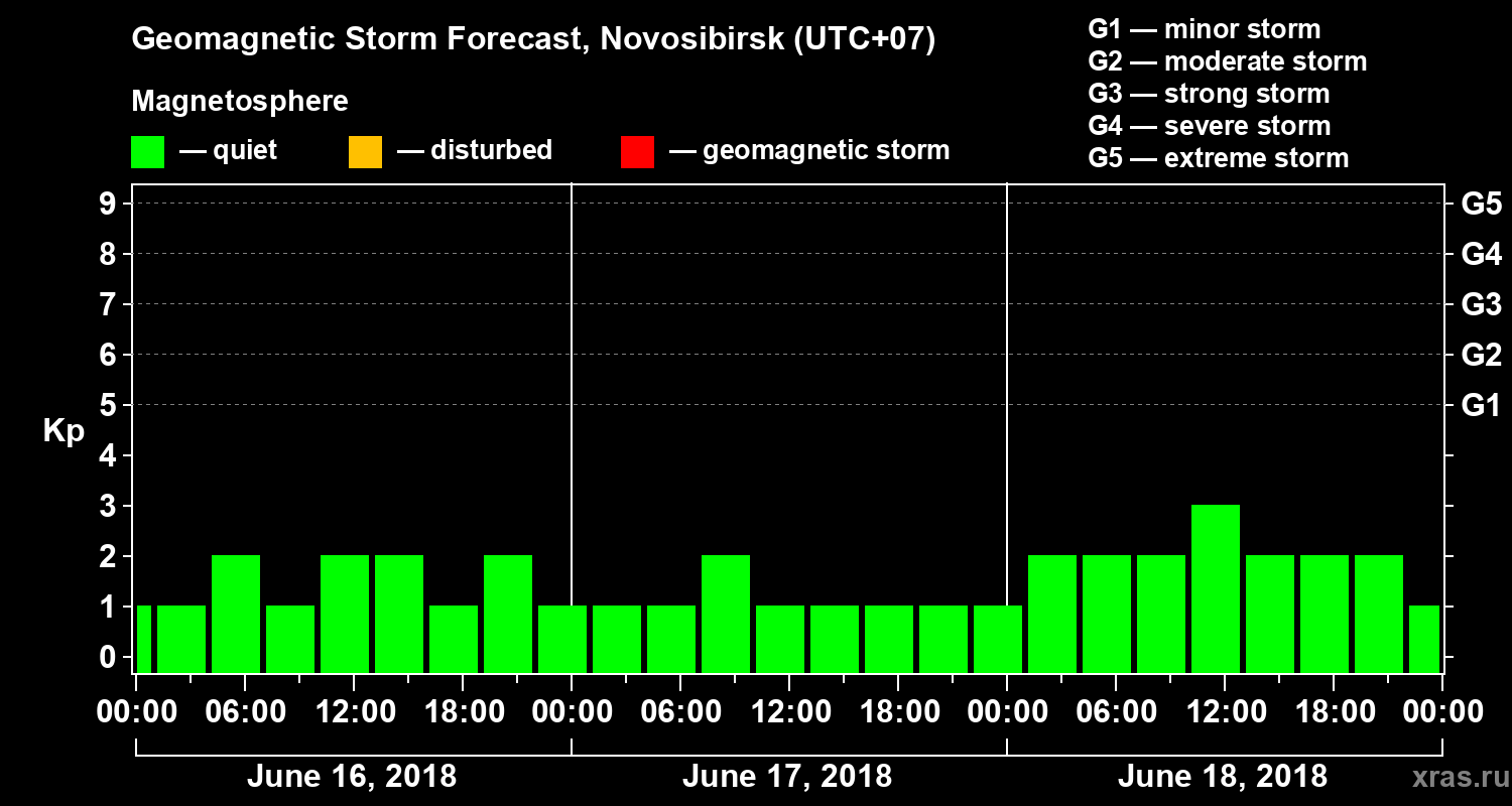 Geomagnetic storm forecast in Novosibirsk for Jun 16, 2018