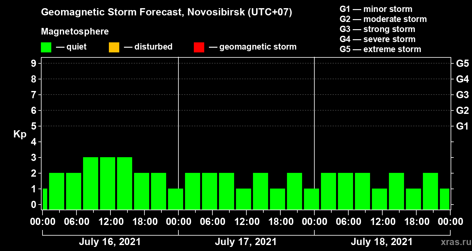 Geomagnetic storm forecast in Novosibirsk for Jul 16, 2021