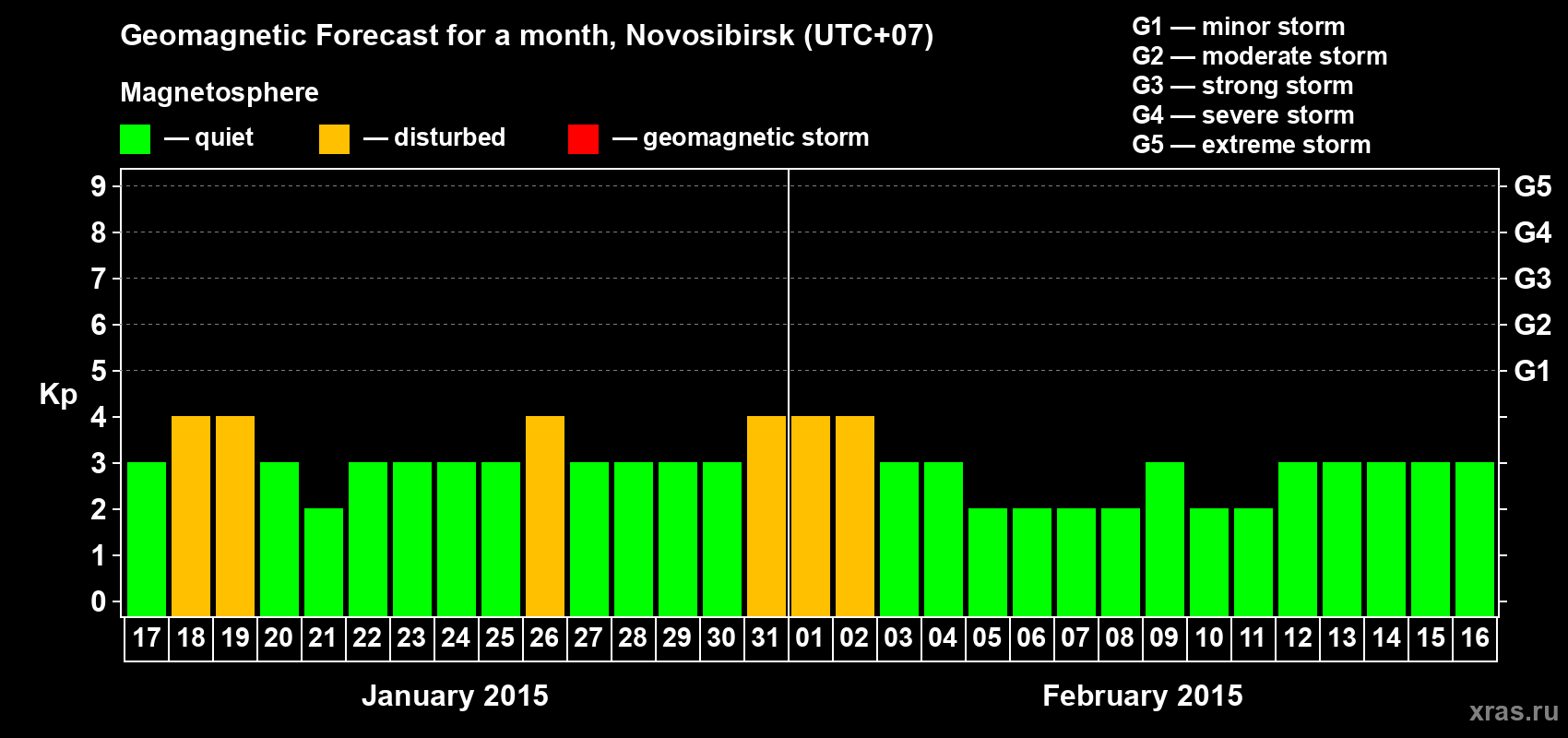 Geomagnetic storm forecast in Novosibirsk for Jan 17, 2015