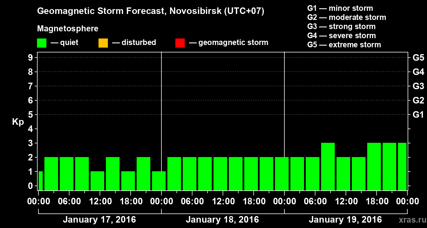 Geomagnetic storm forecast in Novosibirsk for Jan 17, 2016