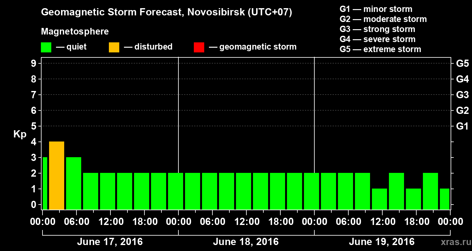 Geomagnetic storm forecast in Novosibirsk for Jun 17, 2016