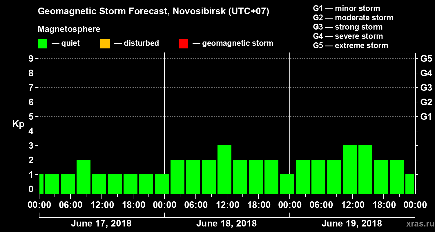 Geomagnetic storm forecast in Novosibirsk for Jun 17, 2018