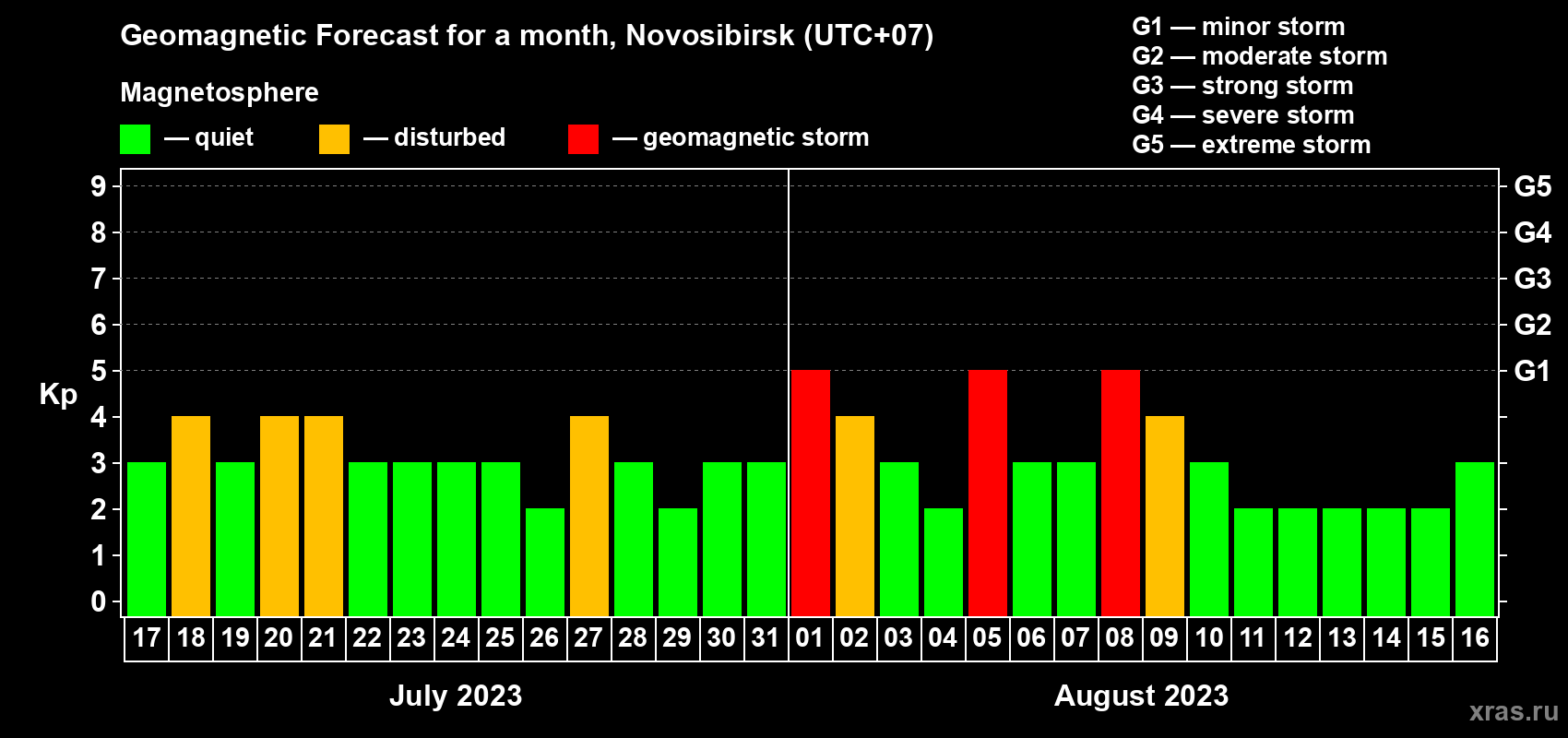Geomagnetic storm forecast in Novosibirsk for Jul 17, 2023