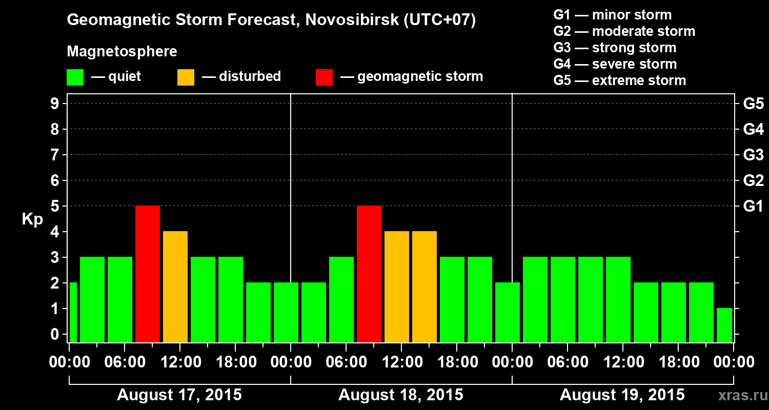 Geomagnetic storm forecast in Novosibirsk for Aug 17, 2015