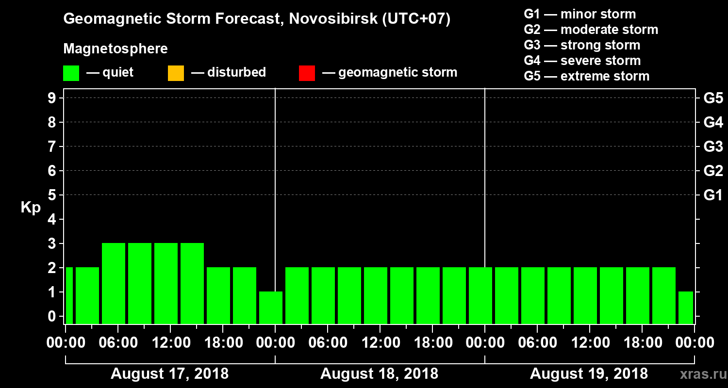 Geomagnetic activity forecast in Novosibirsk — Aug 17, 2018