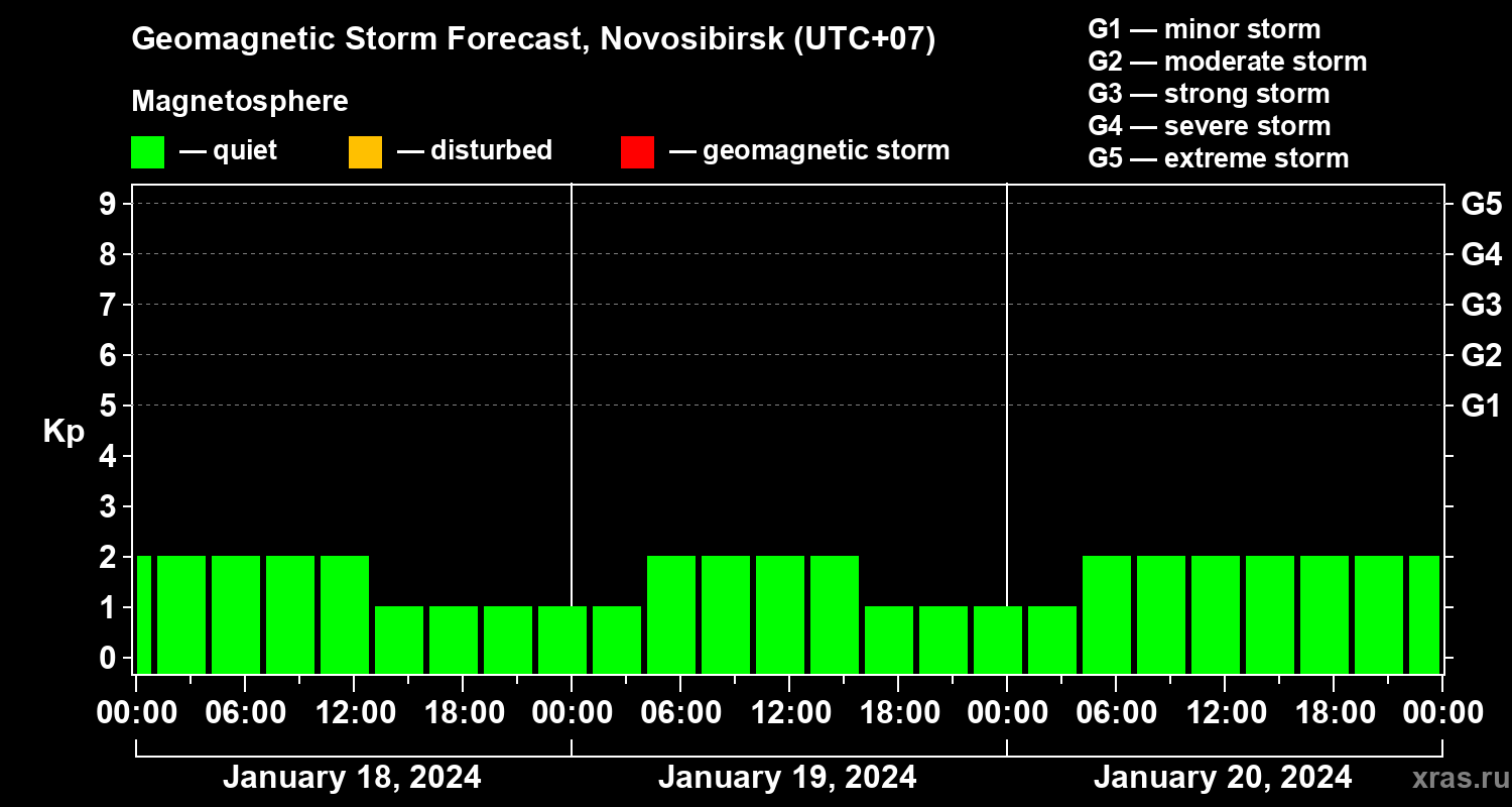 Geomagnetic storm forecast in Novosibirsk for Jan 18, 2024