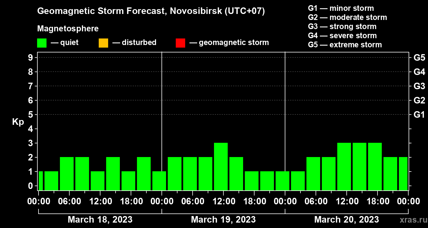 Geomagnetic activity forecast in Novosibirsk — Mar 18, 2023