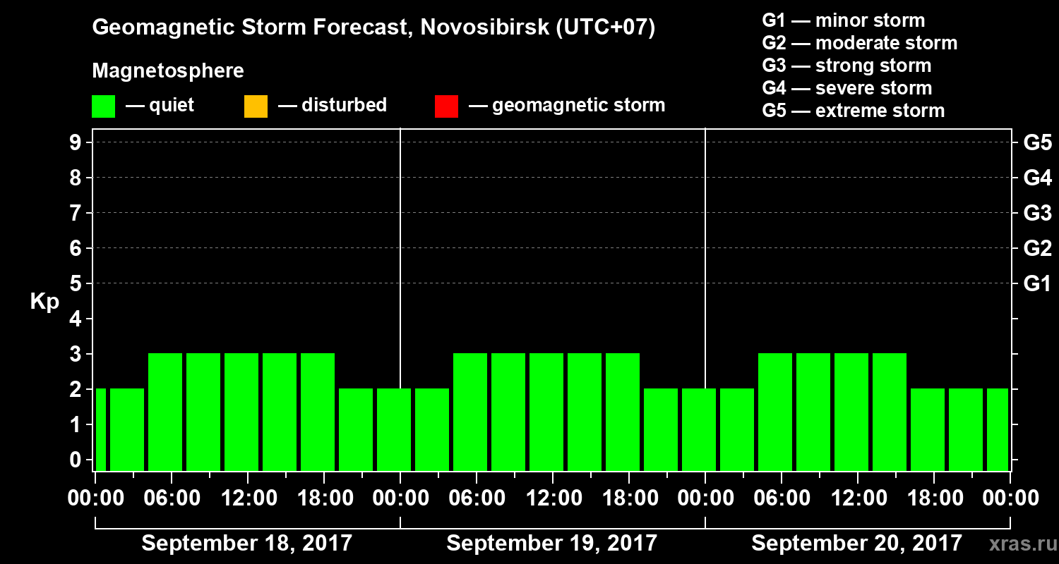 Geomagnetic storm forecast in Novosibirsk for Sep 18, 2017