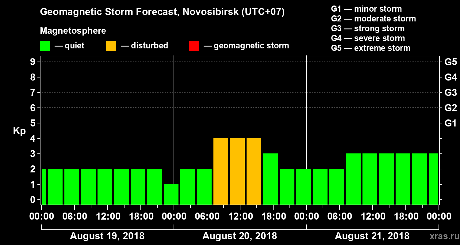 Geomagnetic activity forecast in Novosibirsk — Aug 19, 2018