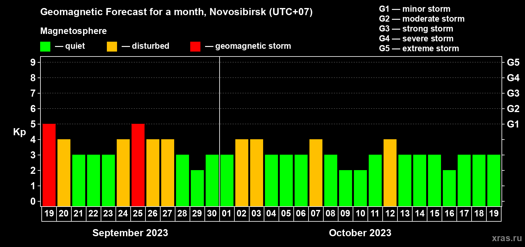 Geomagnetic storm forecast in Novosibirsk for Sep 19, 2023