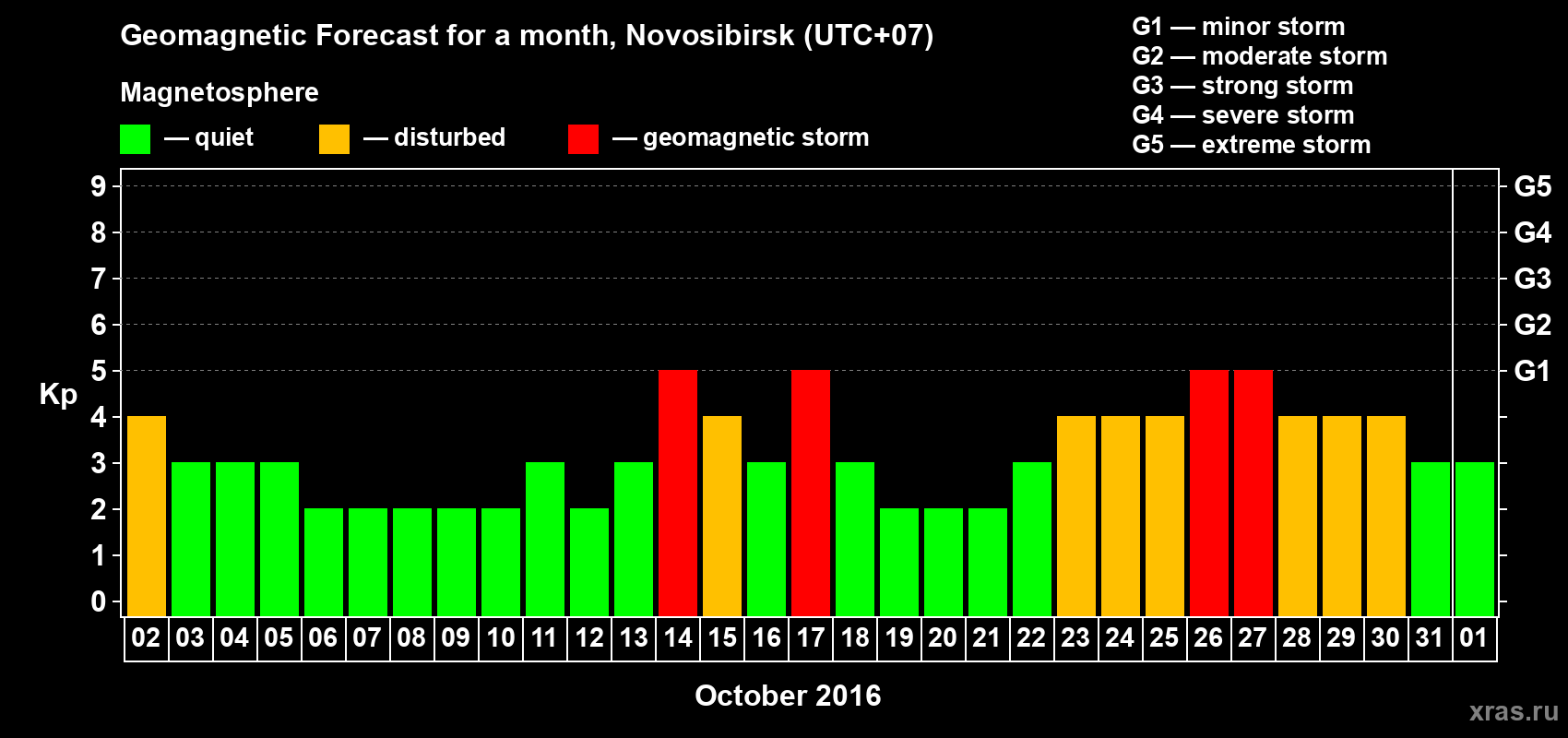 Geomagnetic storm forecast in Novosibirsk for Oct 02, 2016