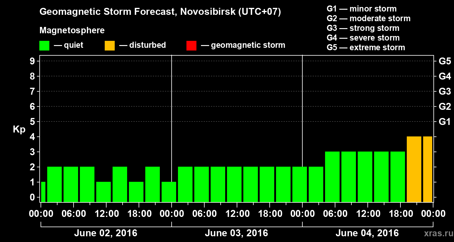 Geomagnetic storm forecast in Novosibirsk for Jun 02, 2016