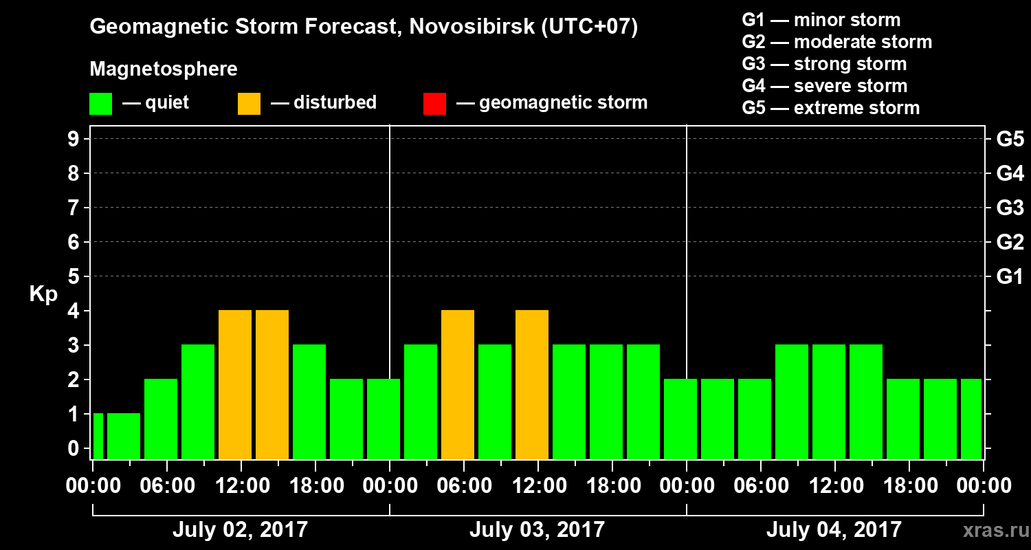 Geomagnetic activity forecast in Novosibirsk — Jul 02, 2017