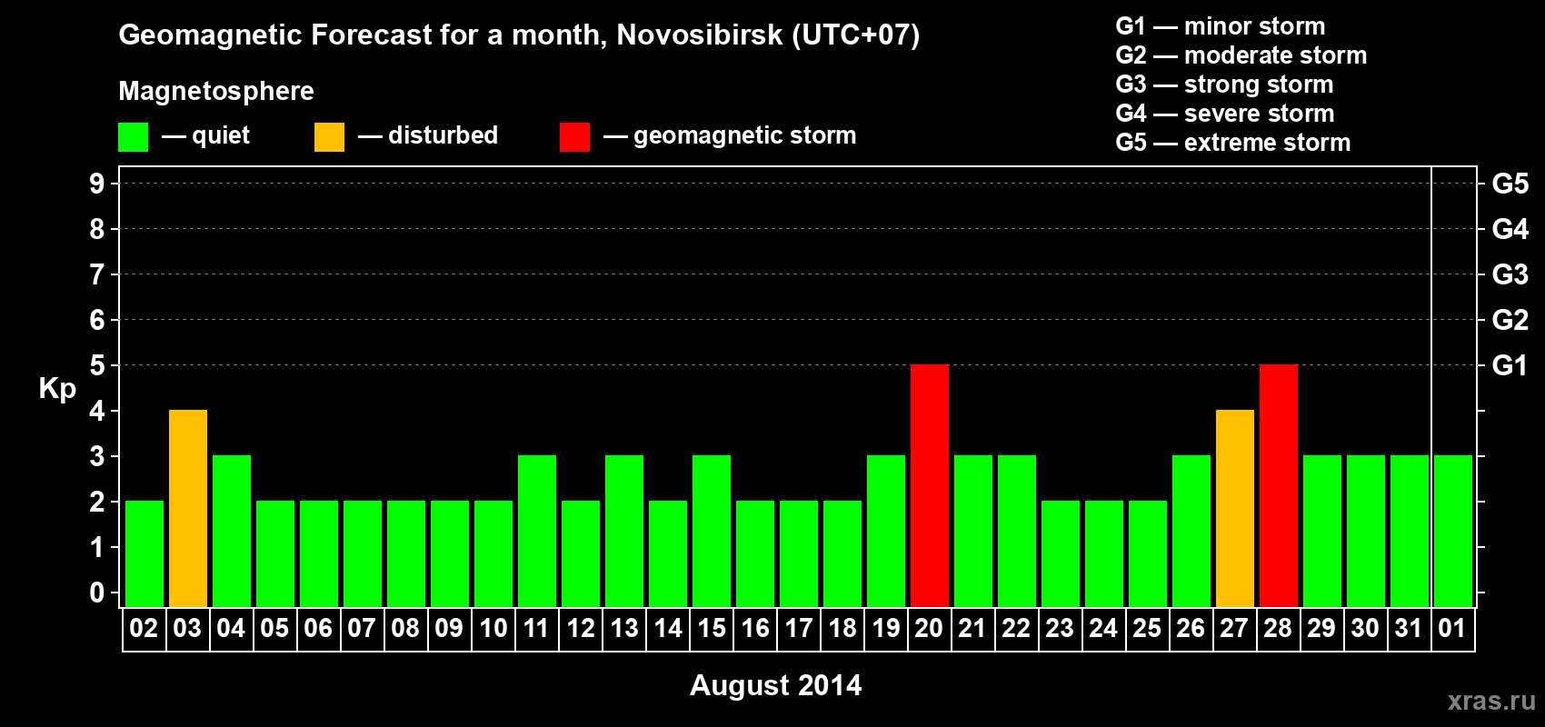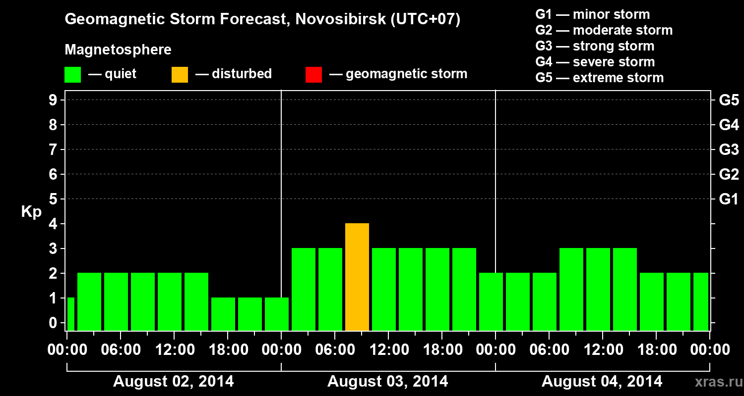 Geomagnetic storm forecast in Novosibirsk for Aug 02, 2014