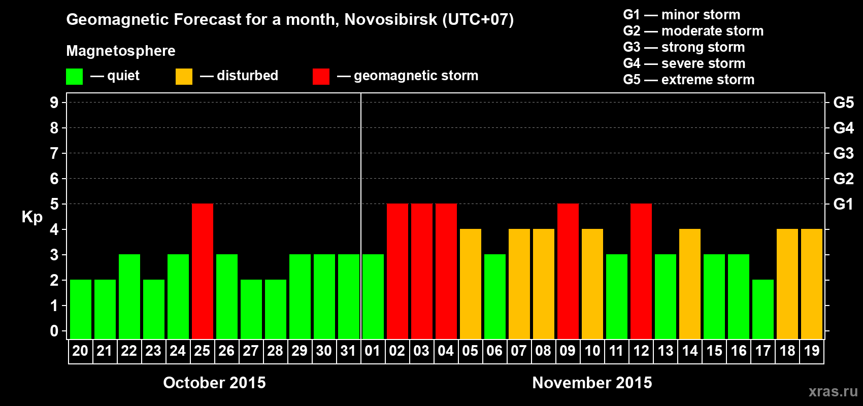 Geomagnetic activity forecast in Novosibirsk — Oct 20, 2015