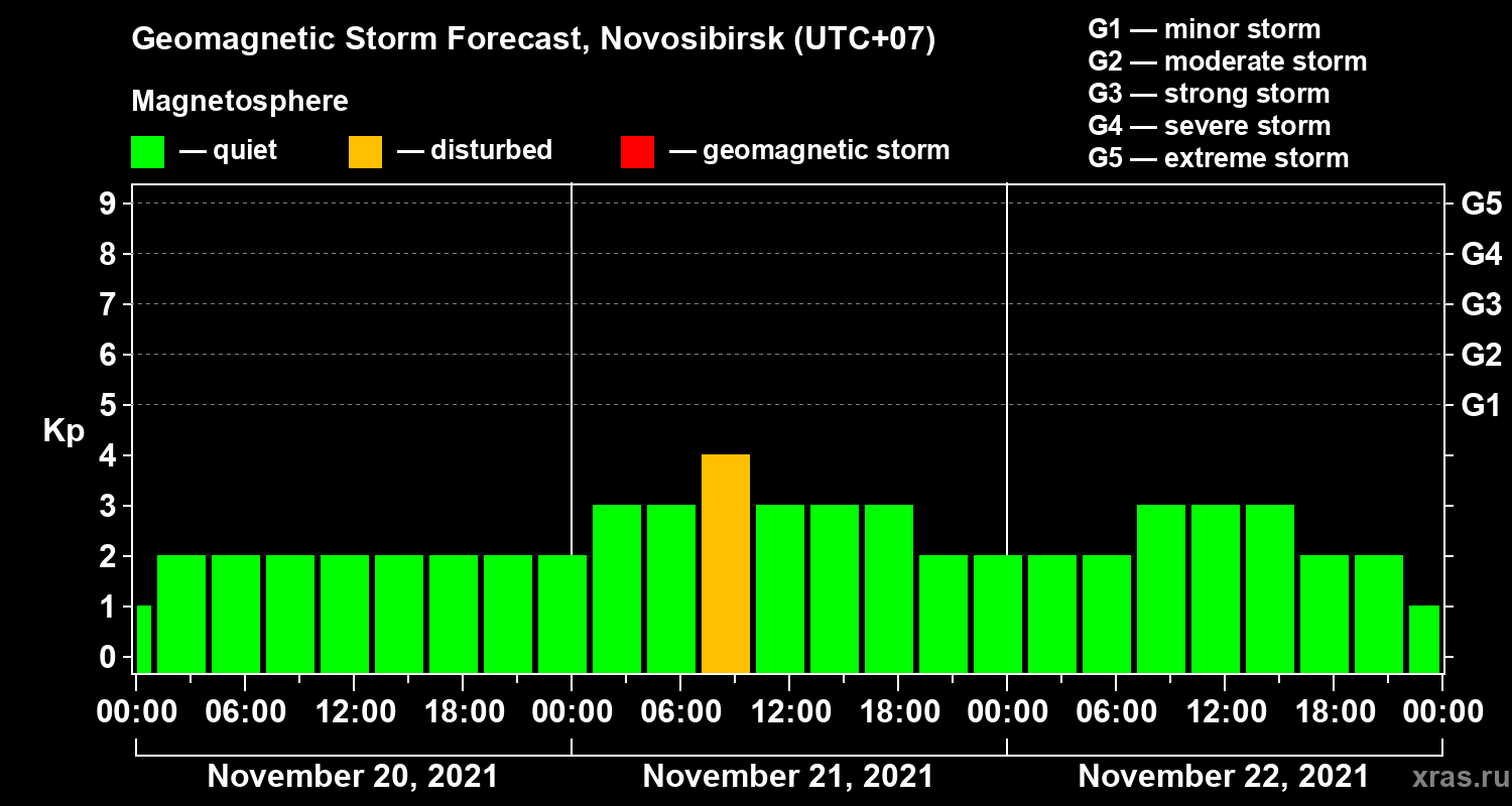Geomagnetic storm forecast in Novosibirsk for Nov 20, 2021