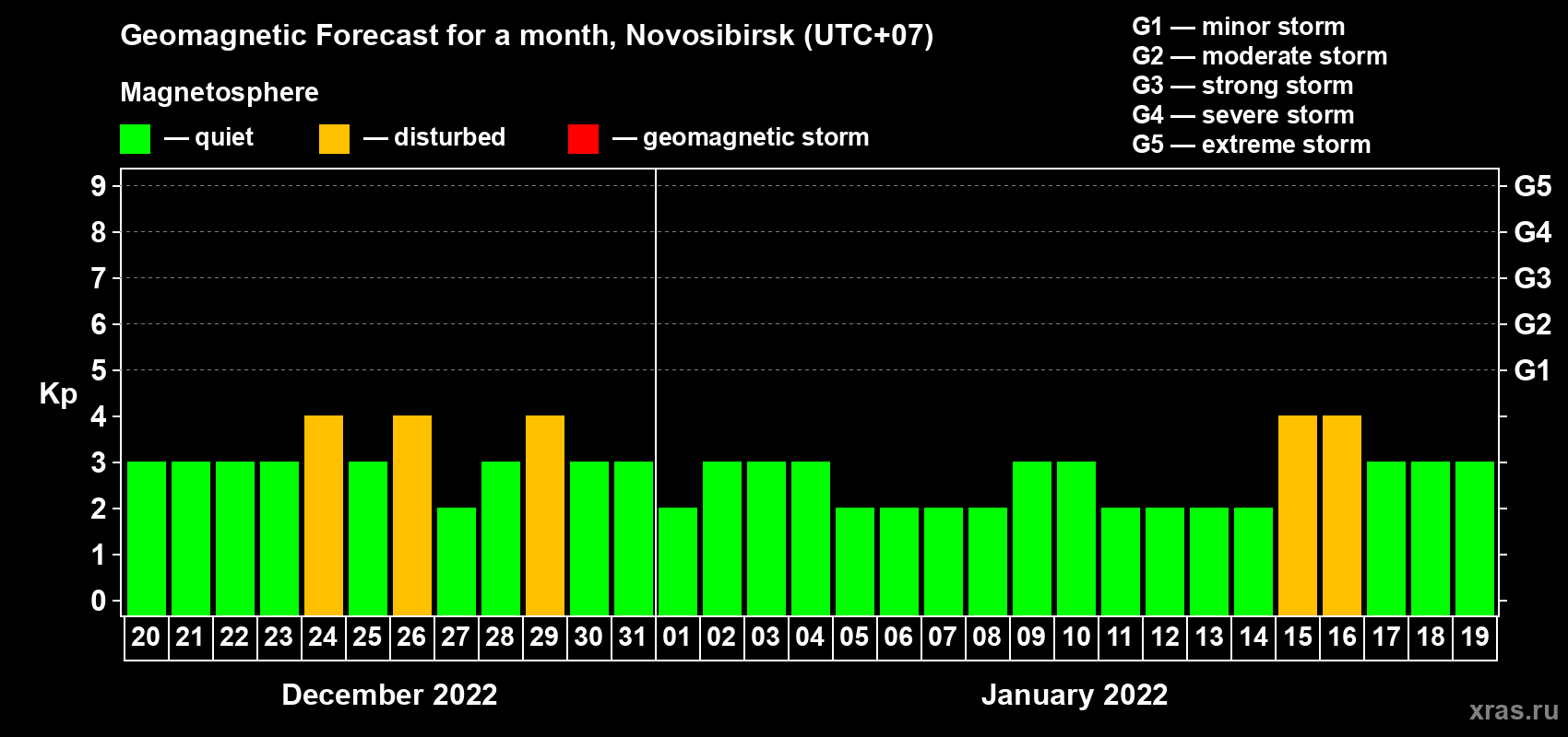 Geomagnetic activity forecast in Novosibirsk — Dec 20, 2021
