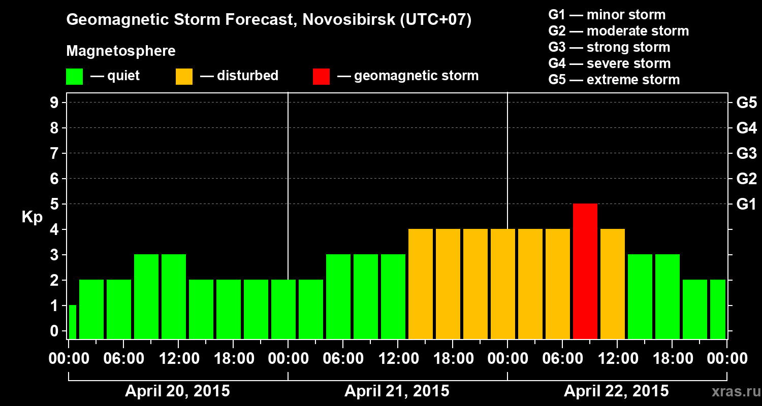 Geomagnetic storm forecast in Novosibirsk for Apr 20, 2015