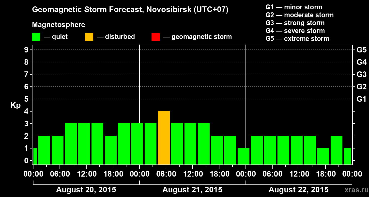Geomagnetic storm forecast in Novosibirsk for Aug 20, 2015