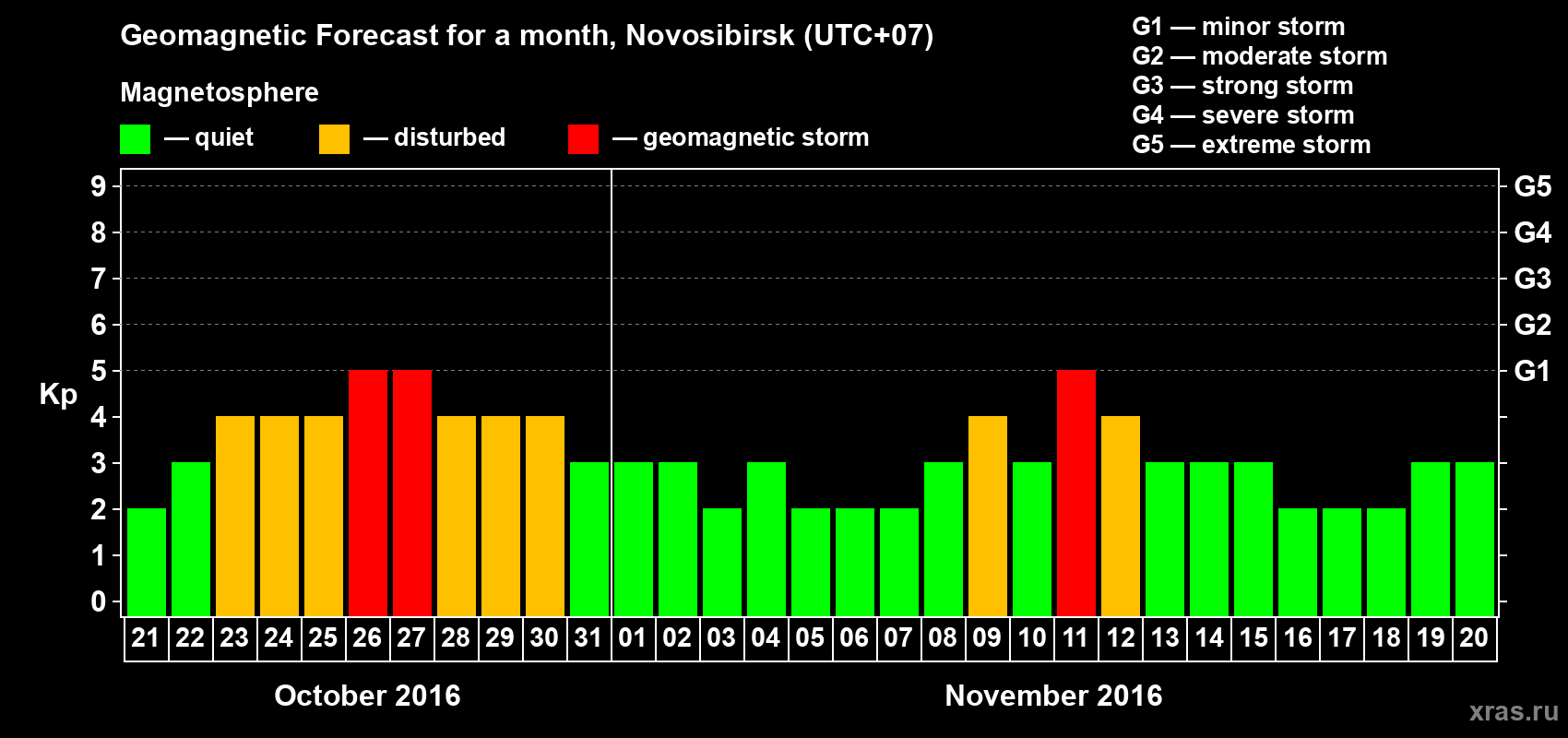 Geomagnetic storm forecast in Novosibirsk for Oct 21, 2016