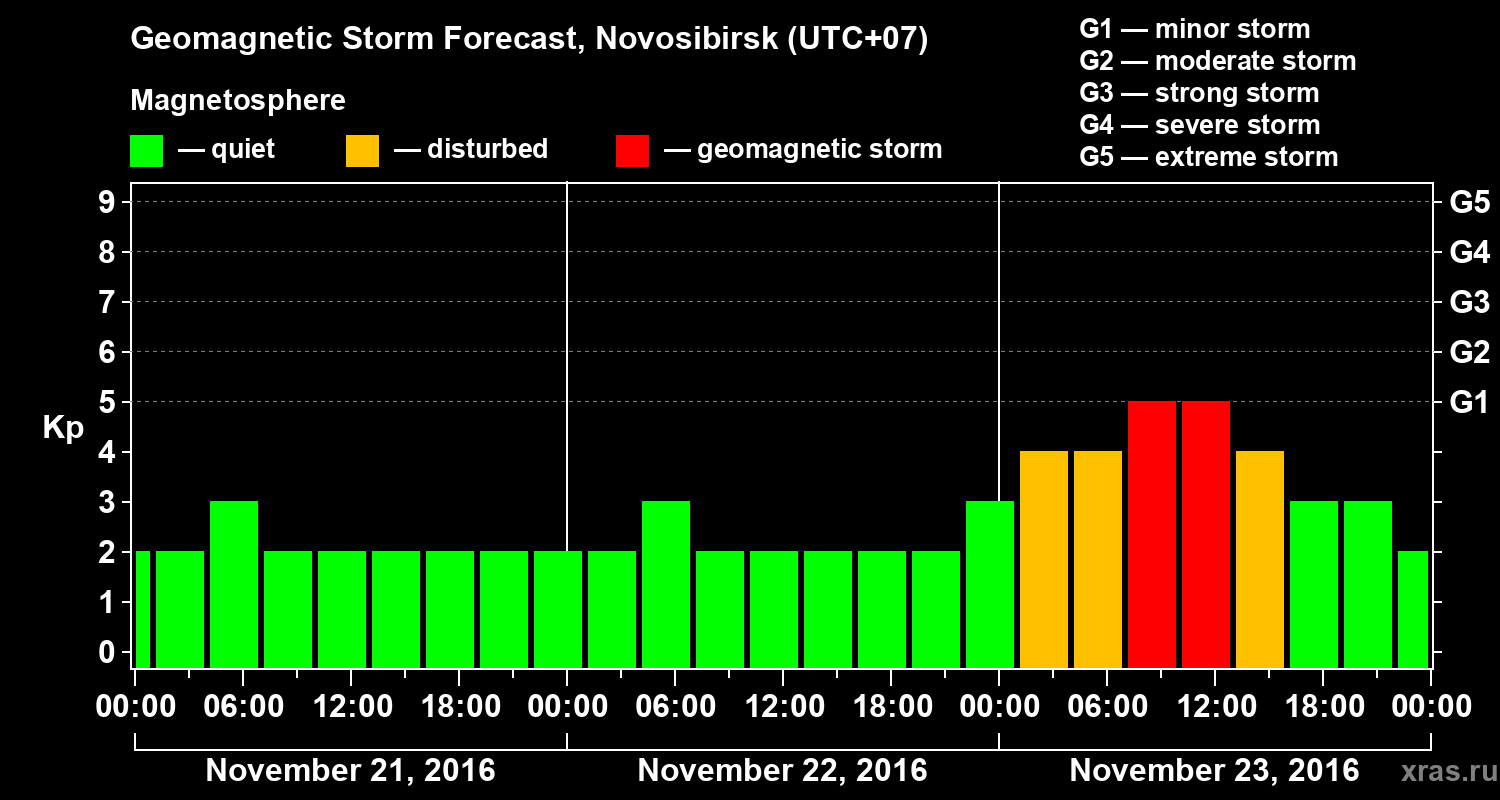 Geomagnetic activity forecast in Novosibirsk — Nov 21, 2016